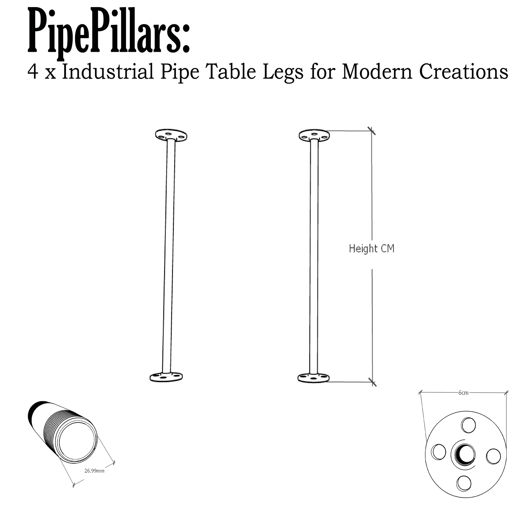 Introducing PipePillars – the foundation of industrial elegance. Crafted from robust pipes, these table legs offer unparalleled strength and a touch of urban chic. Perfect for DIY enthusiasts or those seeking a unique touch, PipePillars transform any tabletop into a statement piece.