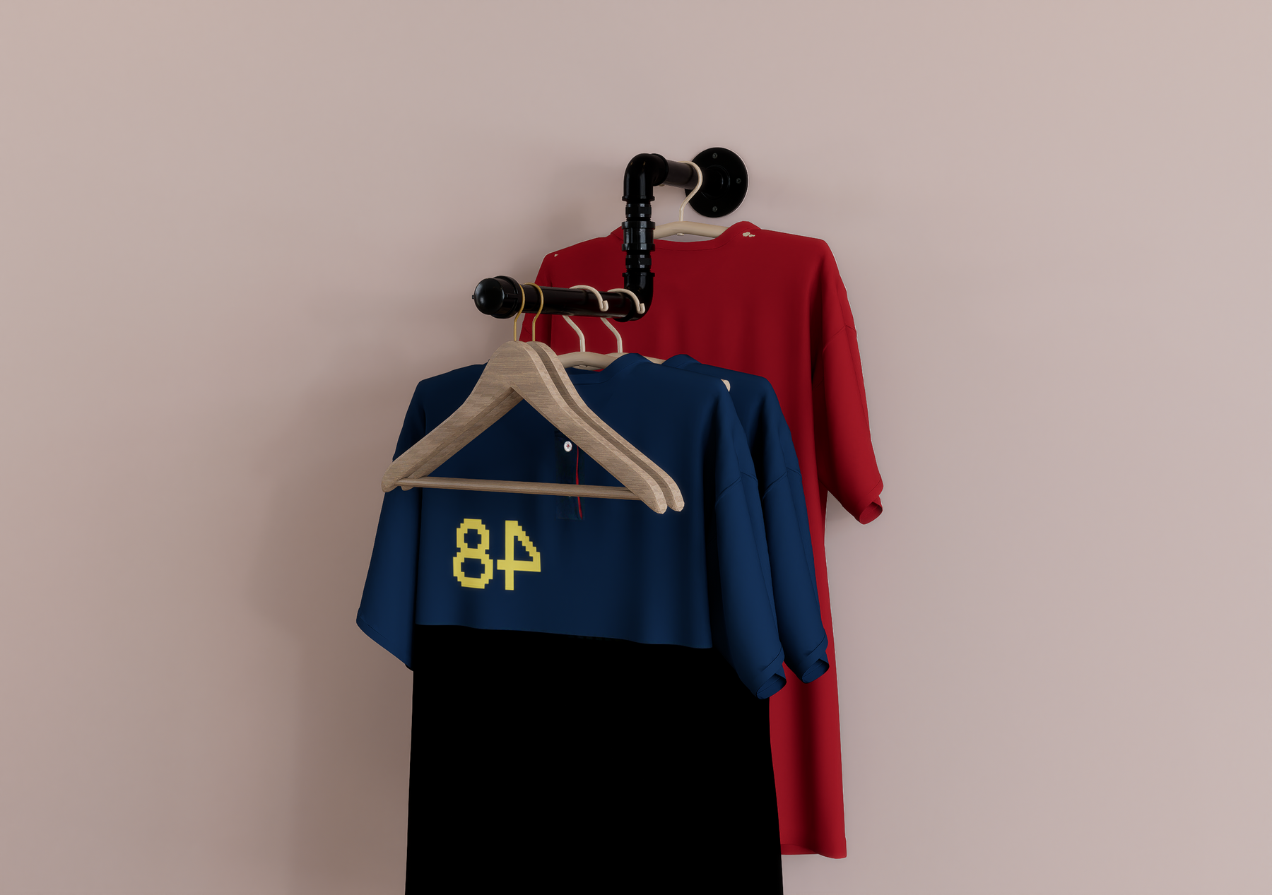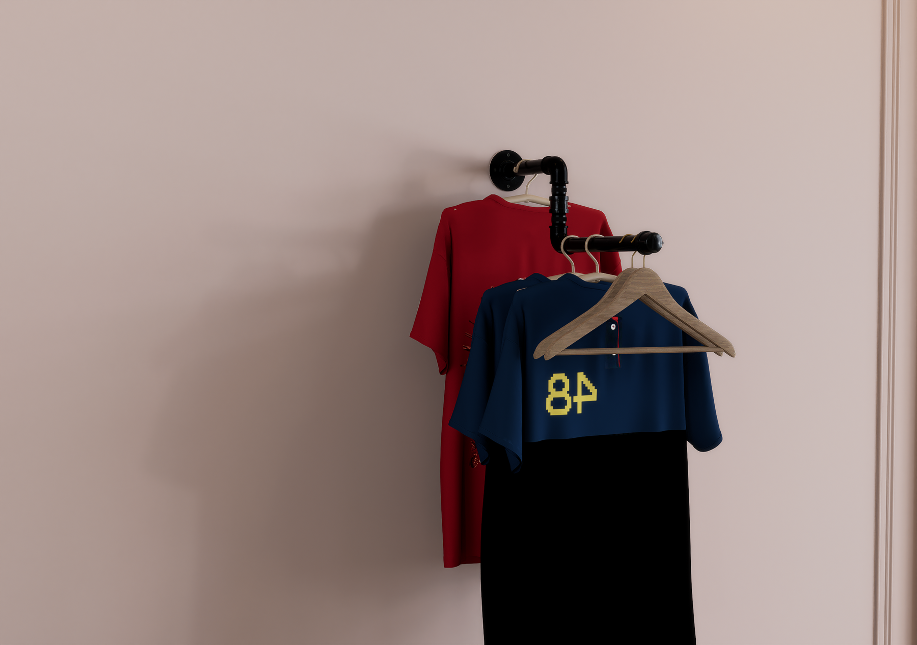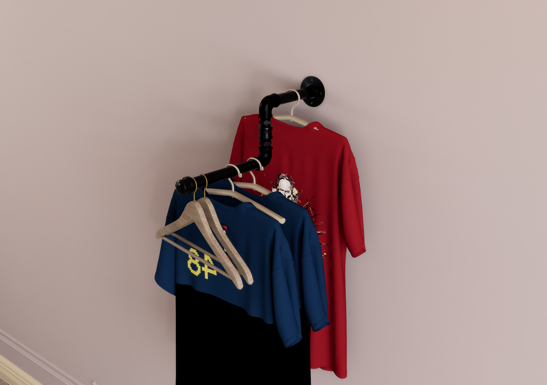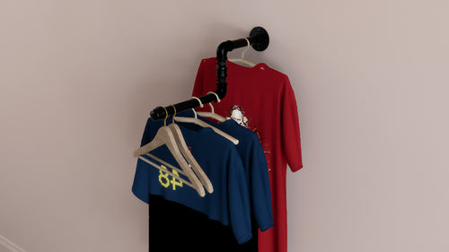 Maximise your space in style with this double level industrial clothes rack, crafted from black steel pipe for rugged durability and rustic charm. Featuring two distinct levels, this clever wall-mounted design offers ample hanging space, perfect for organising outfits, showcasing retail displays or creating a boutique-inspired wardrobe at home.