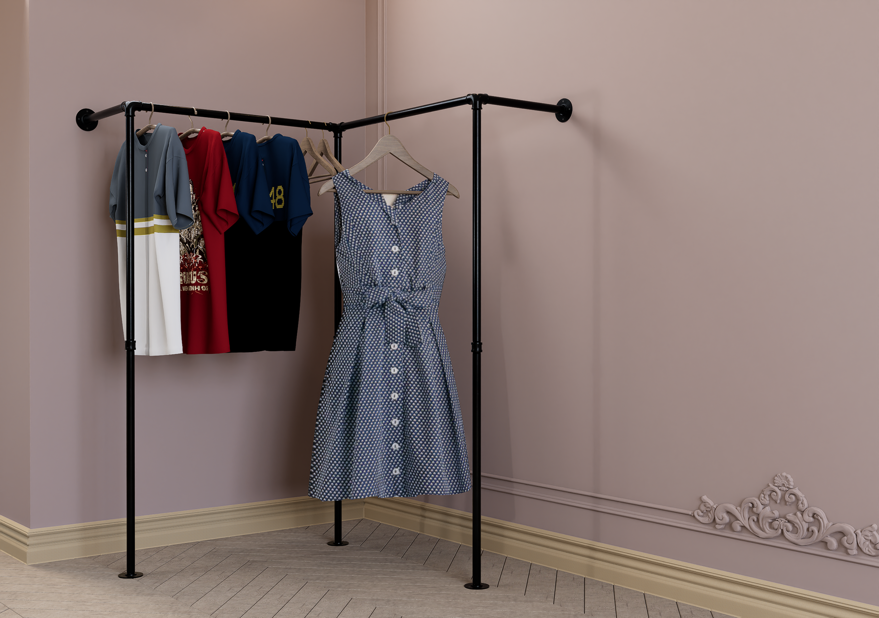 Reclaim every inch of your space with this smartly engineered corner wall-mounted clothes rack — designed for minimalists, small-space dwellers, and boutique lovers alike. The unique L-shaped design fits snugly into corners, transforming unused zones into stylish vertical storage.