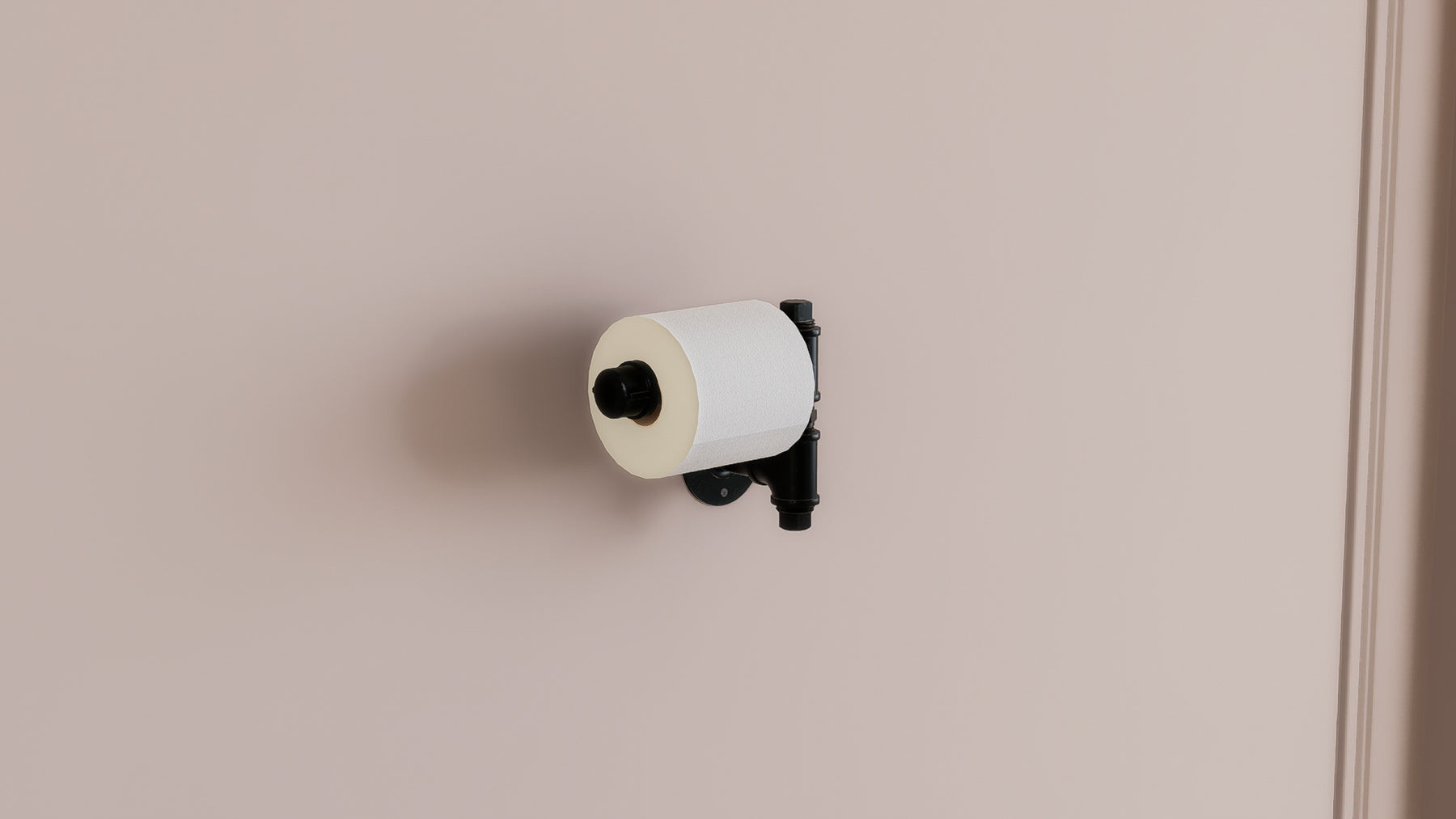 Bring sleek, industrial charm to your bathroom with this black steel pipe toilet paper holder. Designed for a single roll, its minimalist design delivers functionality with an edgy aesthetic.