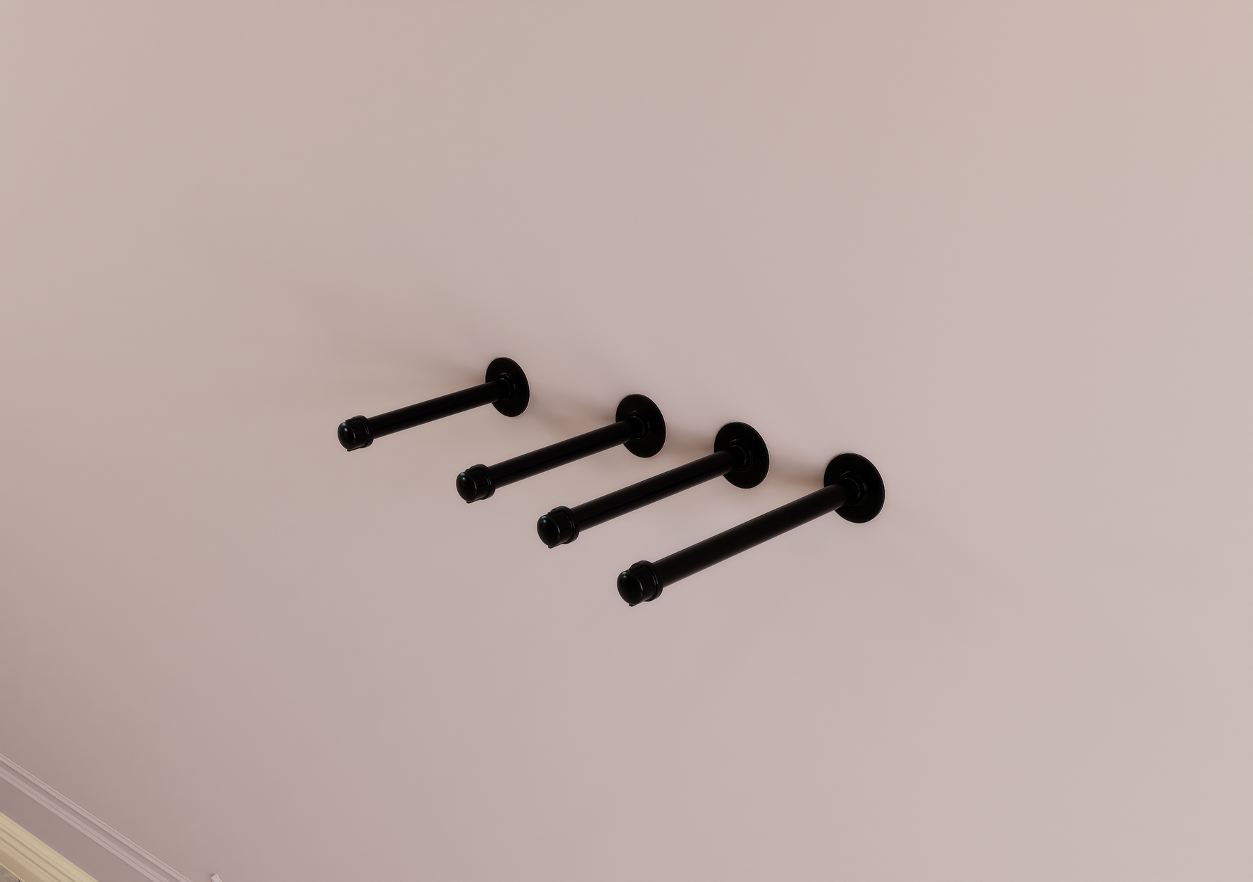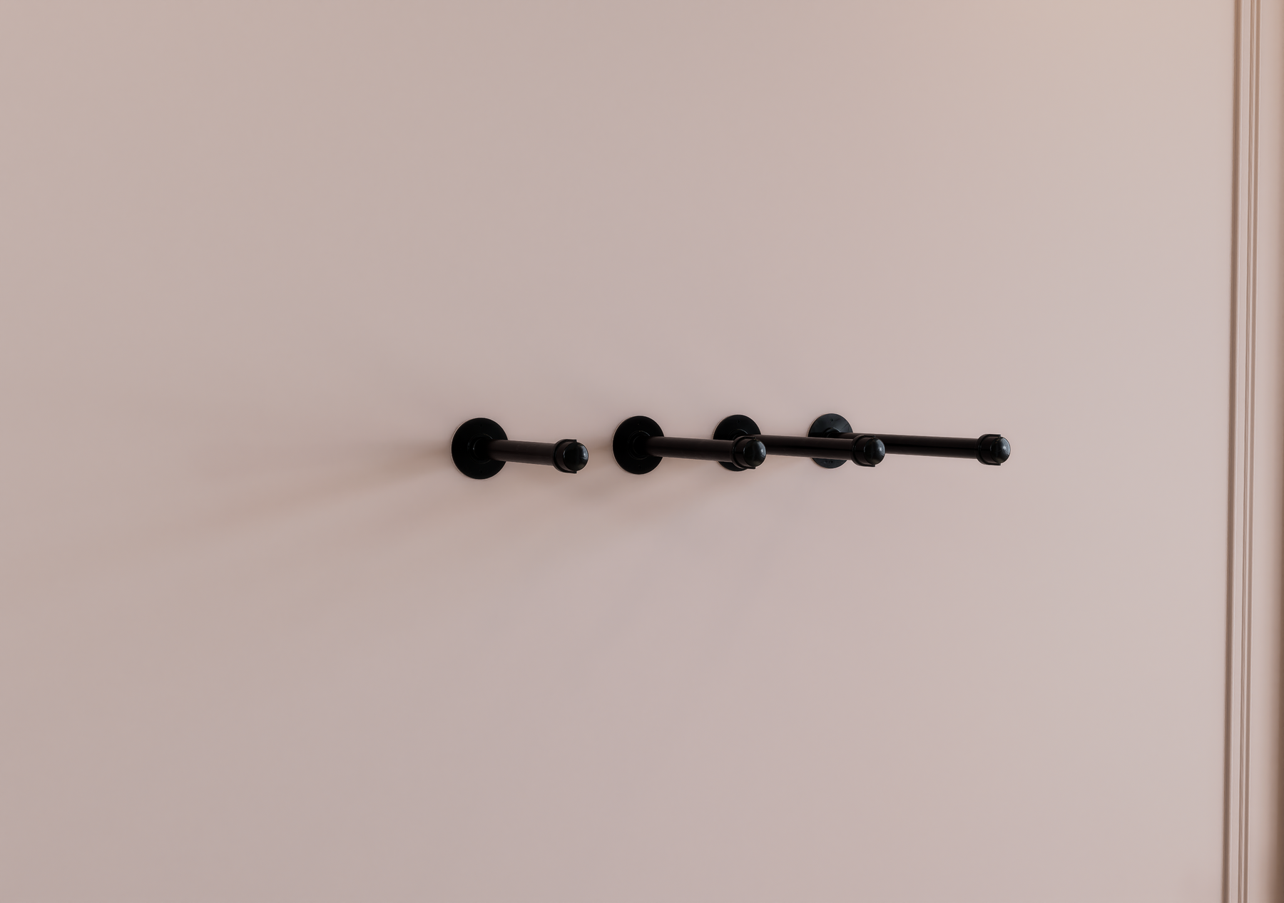 Each pole mounts individually, giving you full control over spacing and layout. Mount them close together for dense storage or spread them apart for a gallery-style hanging arrangement. The heavy-duty black metal pipes ensure strength and durability while offering sleek, industrial style.