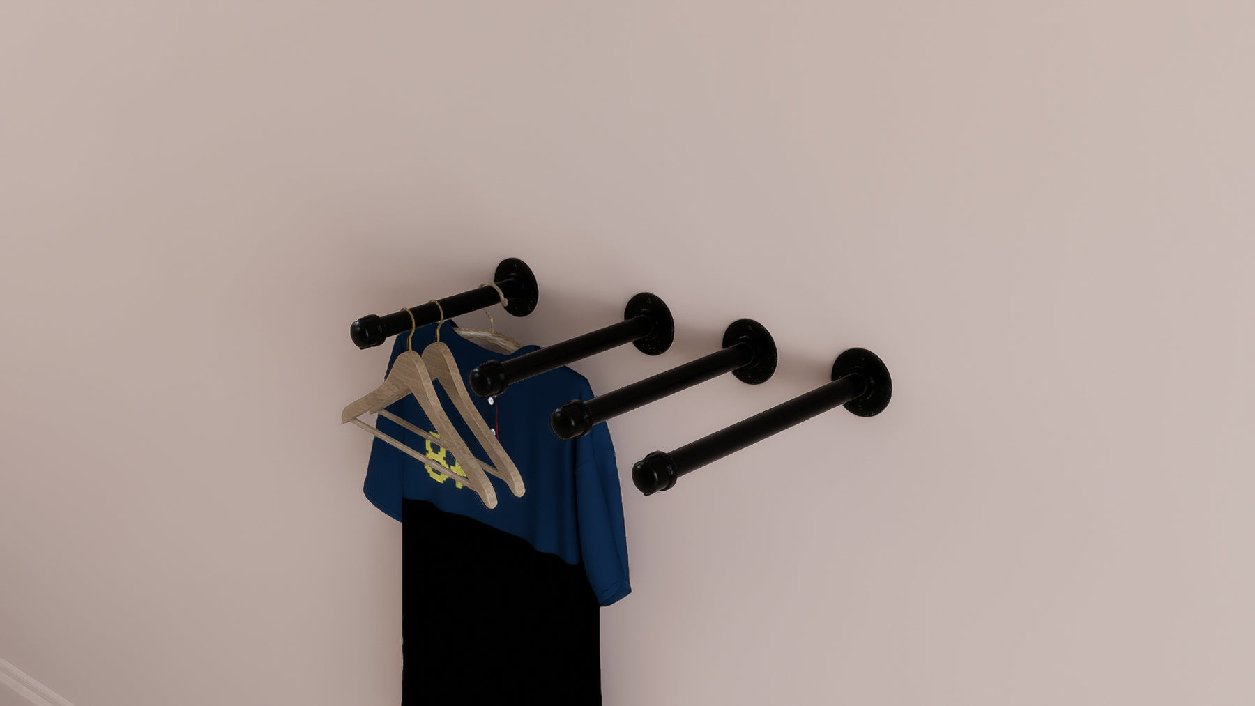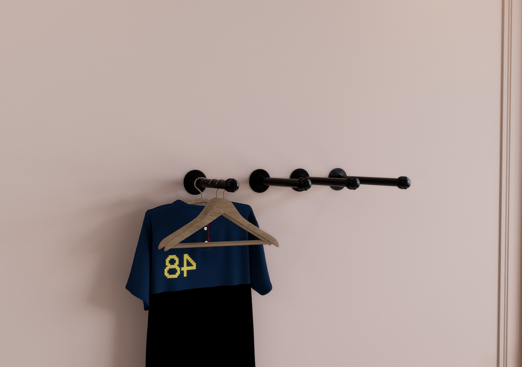 Bring flexibility and industrial style into your home with this adjustable wall-mounted clothes rack, crafted from up to 4 separate black pipe poles. Use as many or as few as you need to create your ideal storage solution — whether for tight closet spaces, open boutique displays, or minimalist modern interiors.