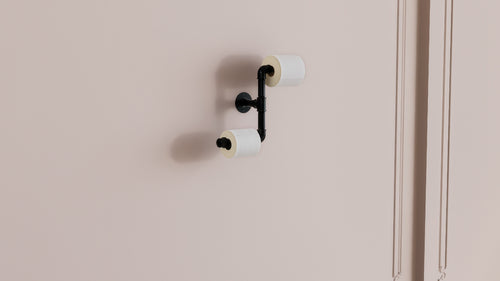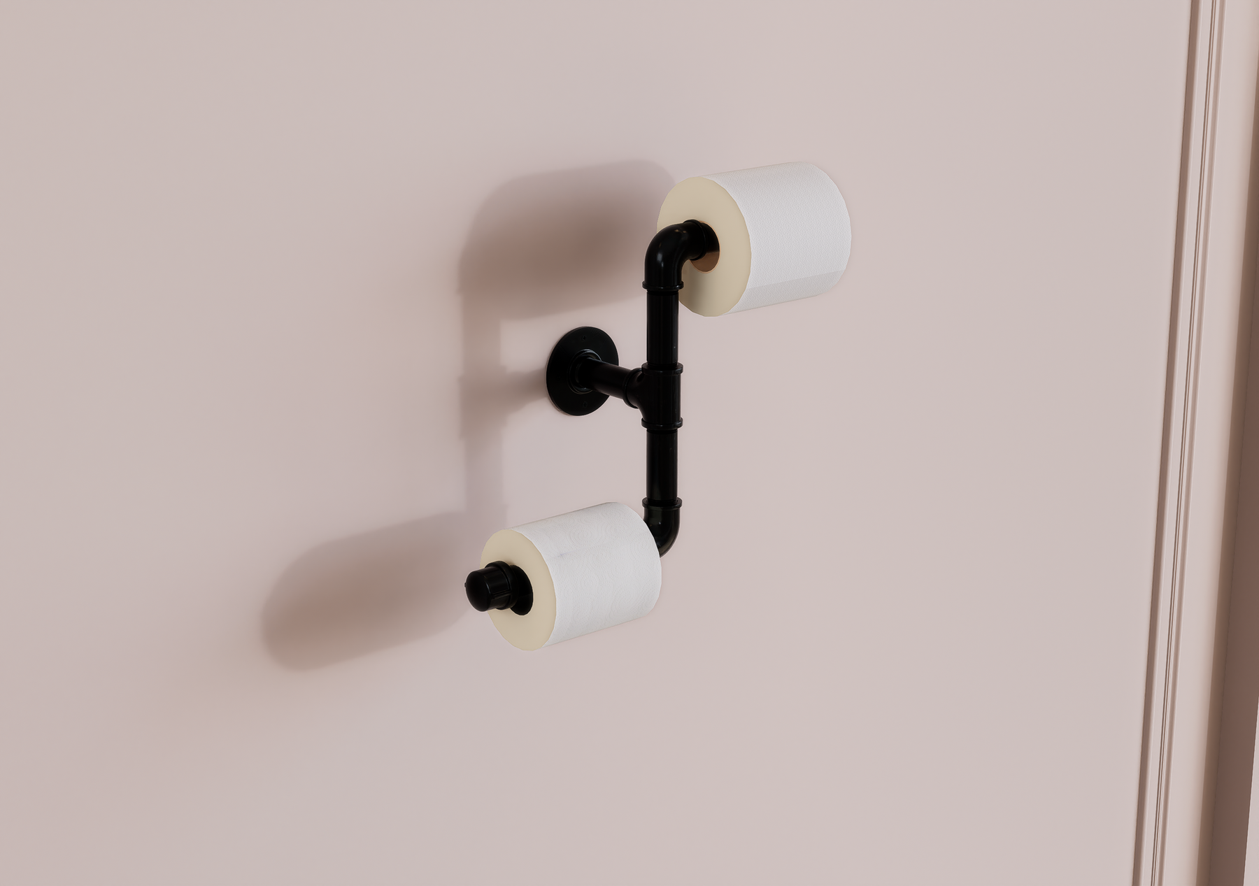 Elevate your bathroom with this industrial black iron pipe toilet paper holder — where modern minimalism meets rustic charm. Expertly crafted from durable metal pipe, this wall-mounted design adds both style and function, keeping your space neat and elevated.