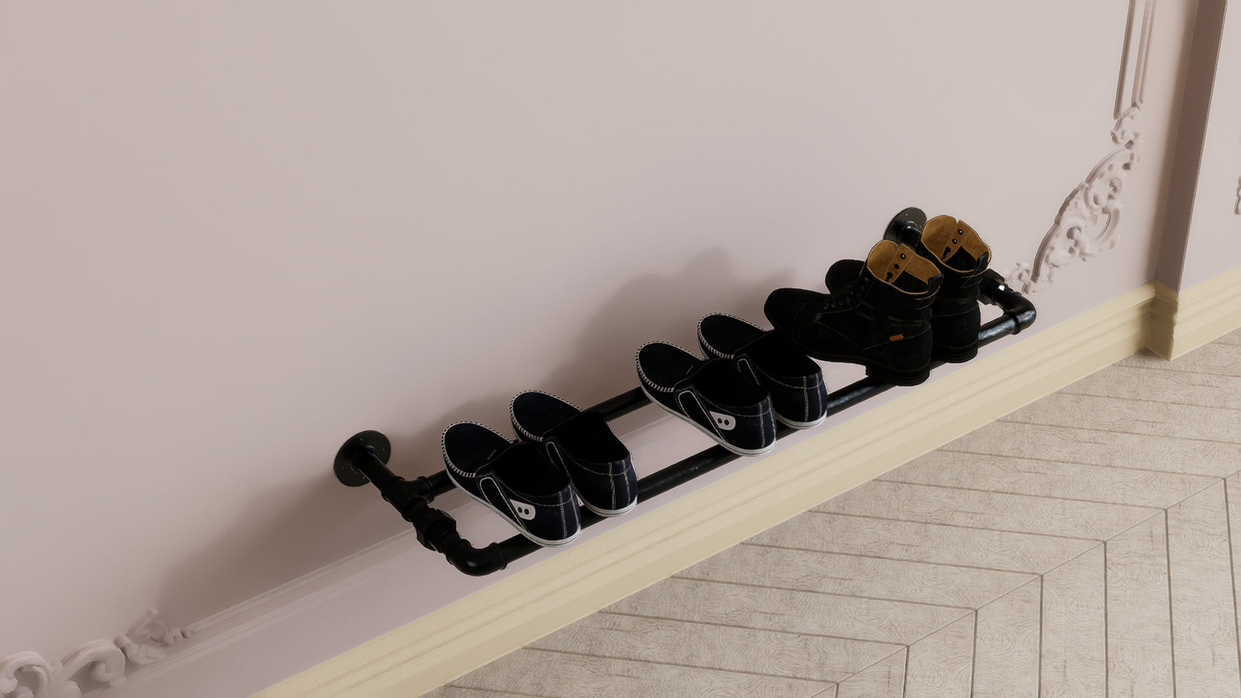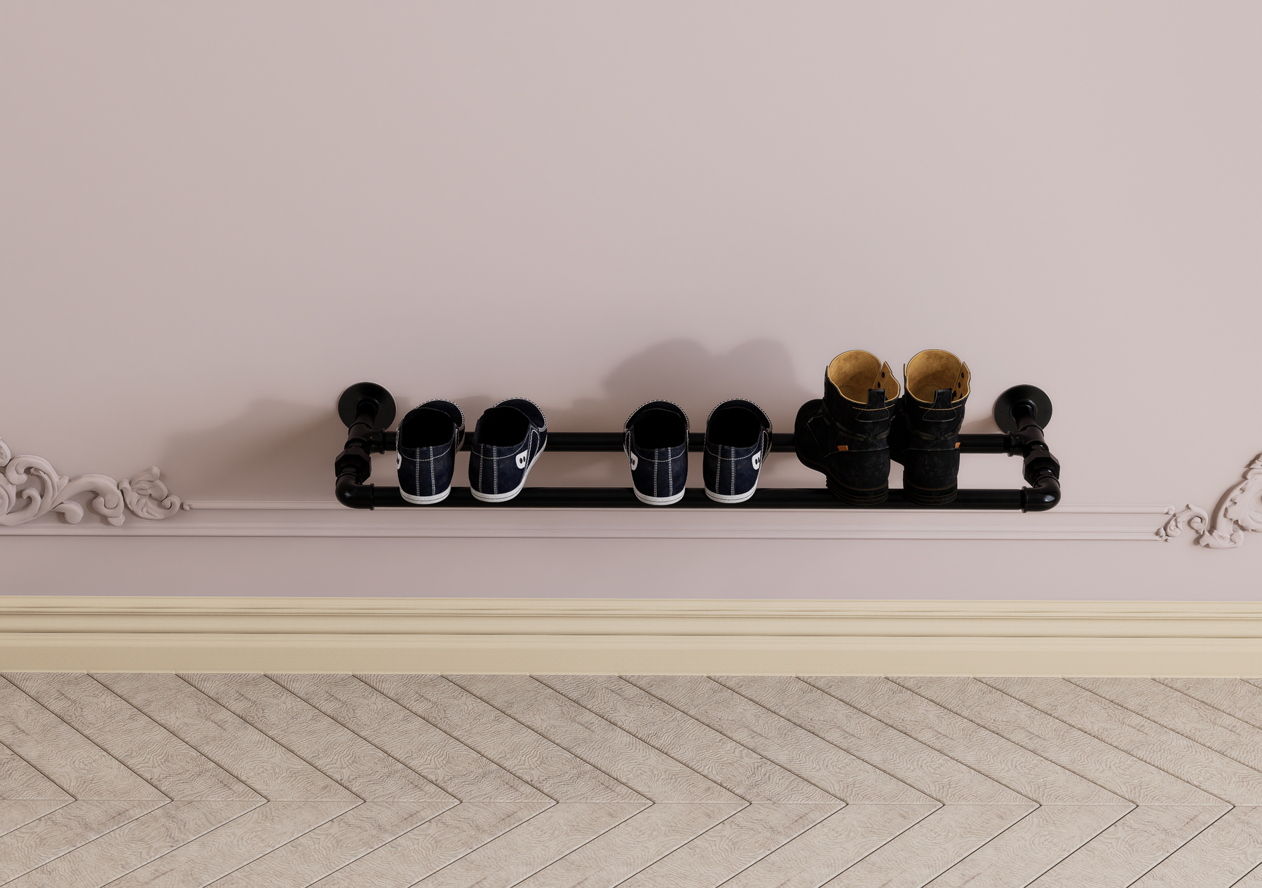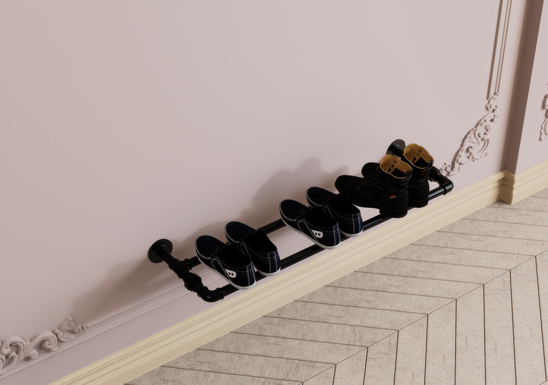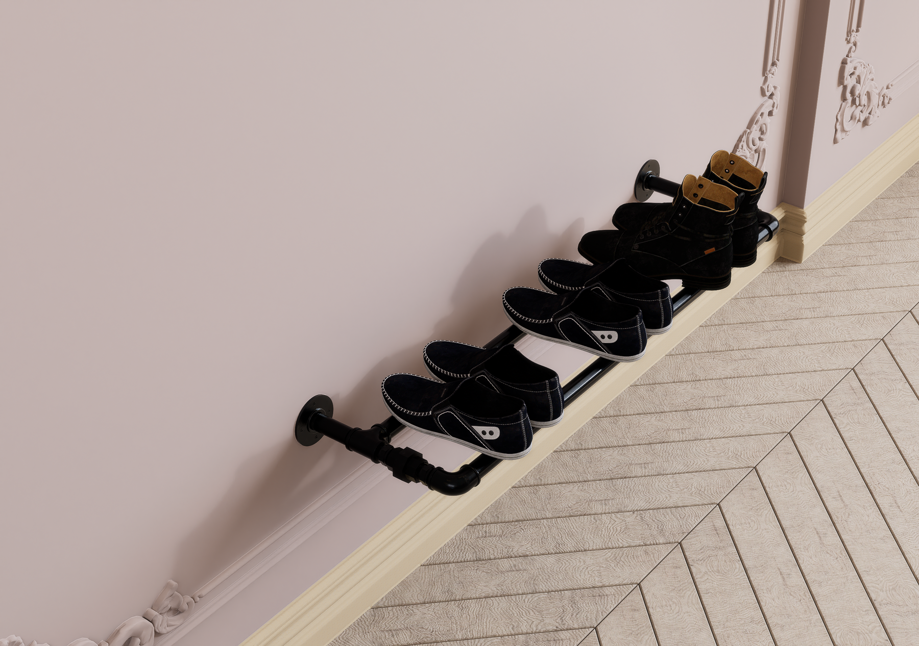 Elevate your shoe storage with this wall-mounted industrial shoe rack, crafted from durable black metal pipes. Perfect for entryways, closets, and bedrooms, it combines space-saving functionality with a bold, minimalist aesthetic. Showcase your shoes in style — from casual pairs to statement boots. The sturdy design ensures long-lasting use while keeping your floors clutter-free.