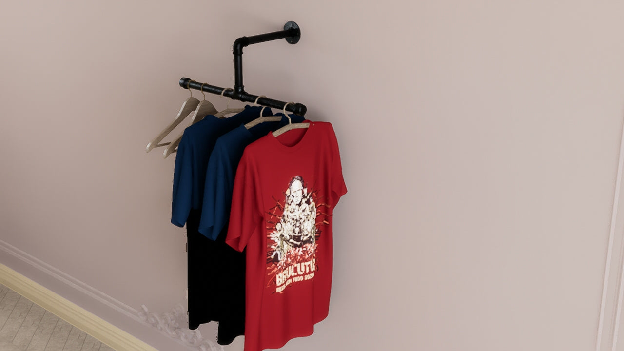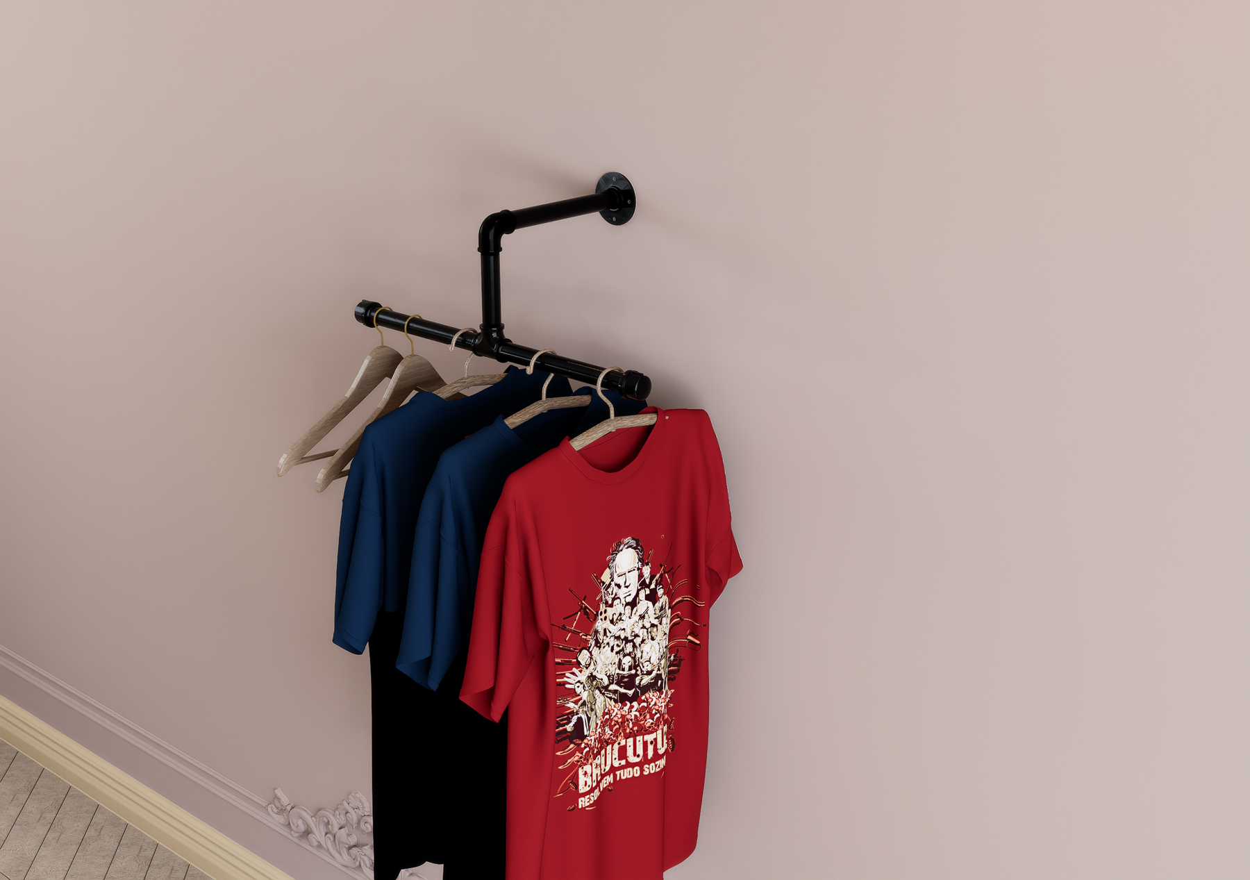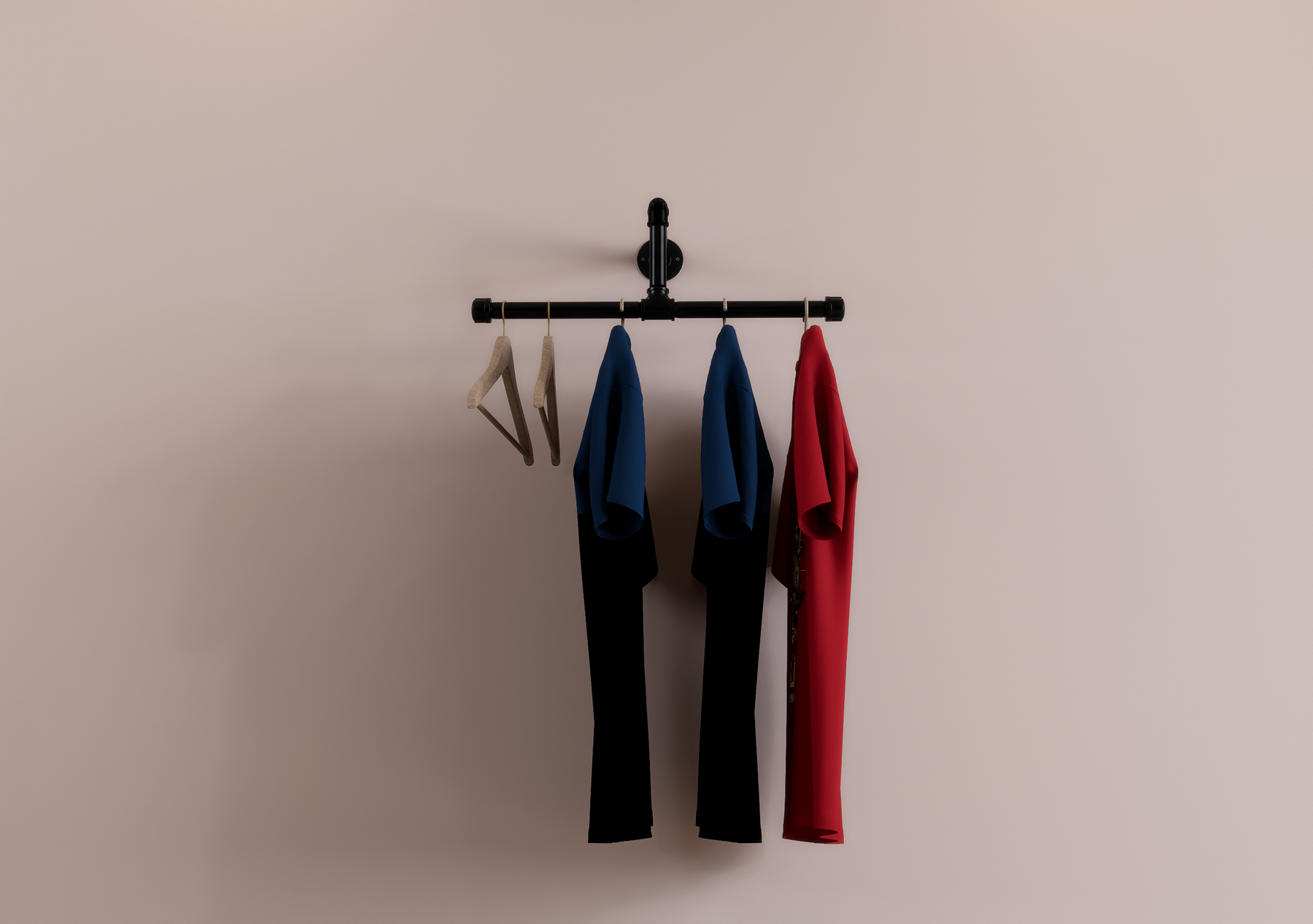 Maximise your space with this compact industrial clothes rack, crafted in a clever upside-down T shape with two horizontal arms for easy hanging. Perfectly sized for small spaces, entryways, closets, or even retail displays, this wall-mounted black steel pipe rack offers stylish storage without bulk.