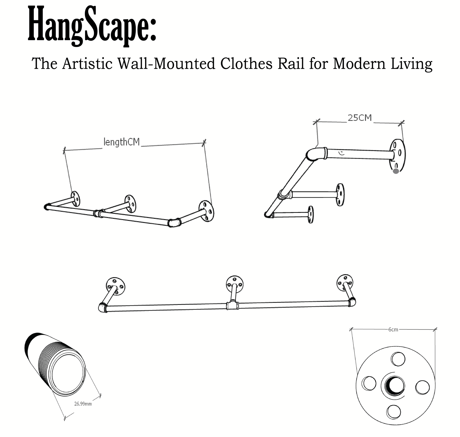 Welcome to HangScape – where fashion meets functionality. This wall-mounted clothes rail provides an elegant platform for your attire, ensuring they hang in style. Designed for those who value aesthetics as much as utility, HangScape is a blend of art and architecture for your garments.