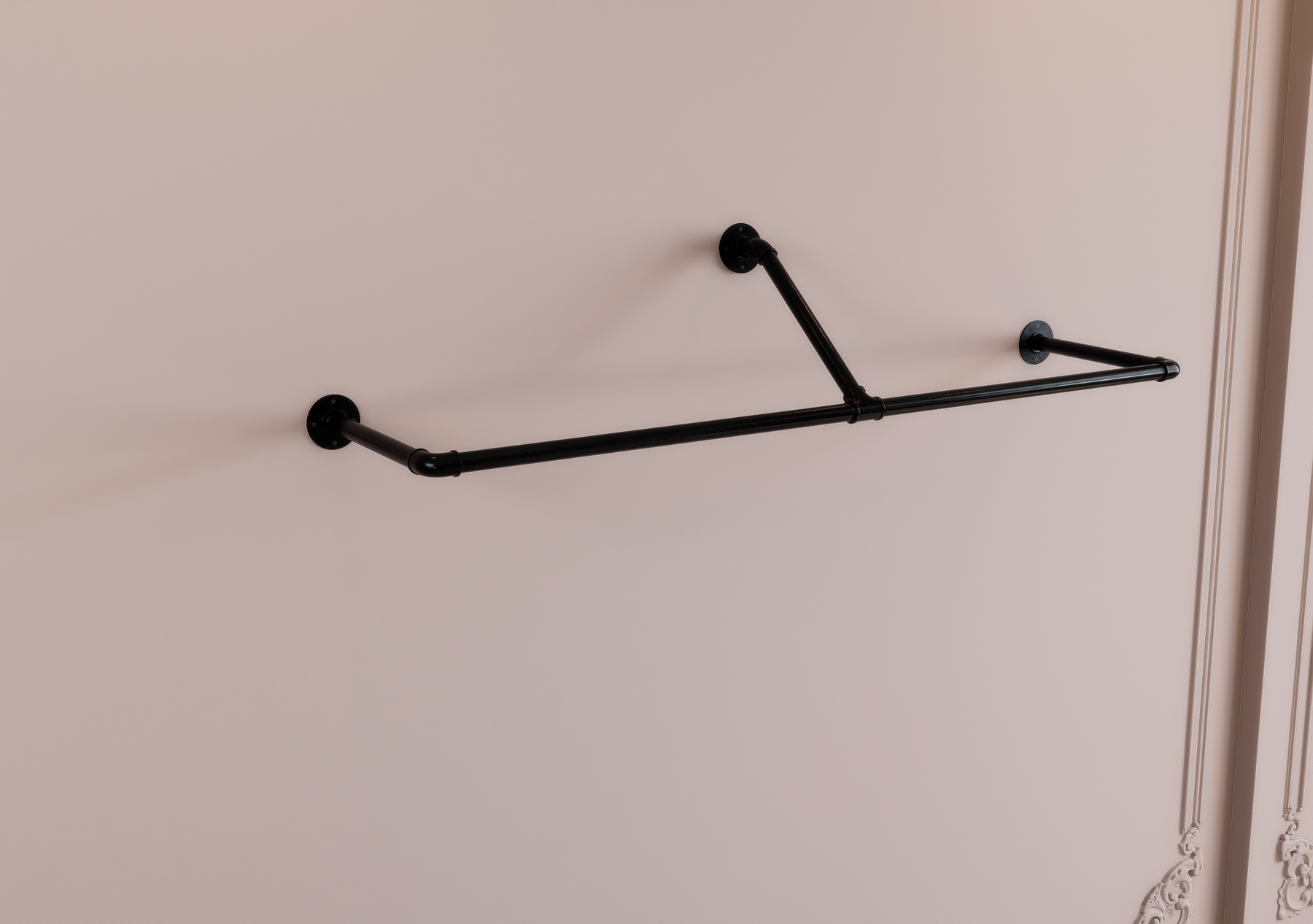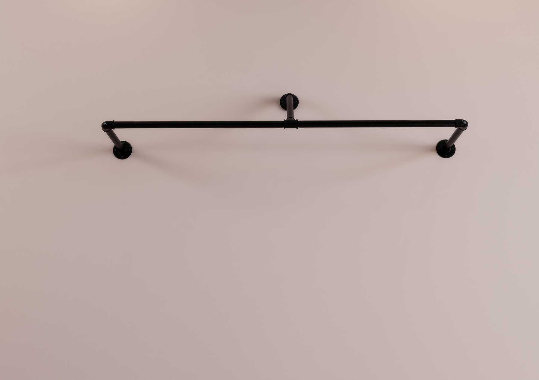 Engineered for enhanced durability, this reinforced wall-mounted clothes rail features a central anchor point that adds critical support for heavier loads. Its sleek design makes it ideal for wardrobes, boutiques, and open-concept closet systems — especially where long hanging spans are needed.