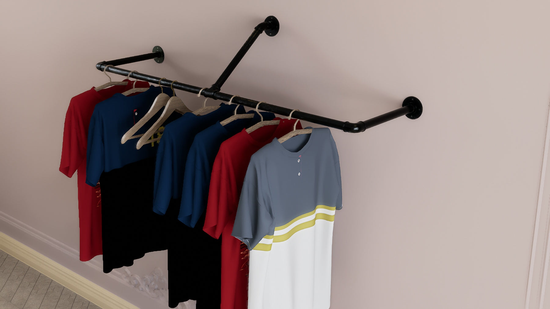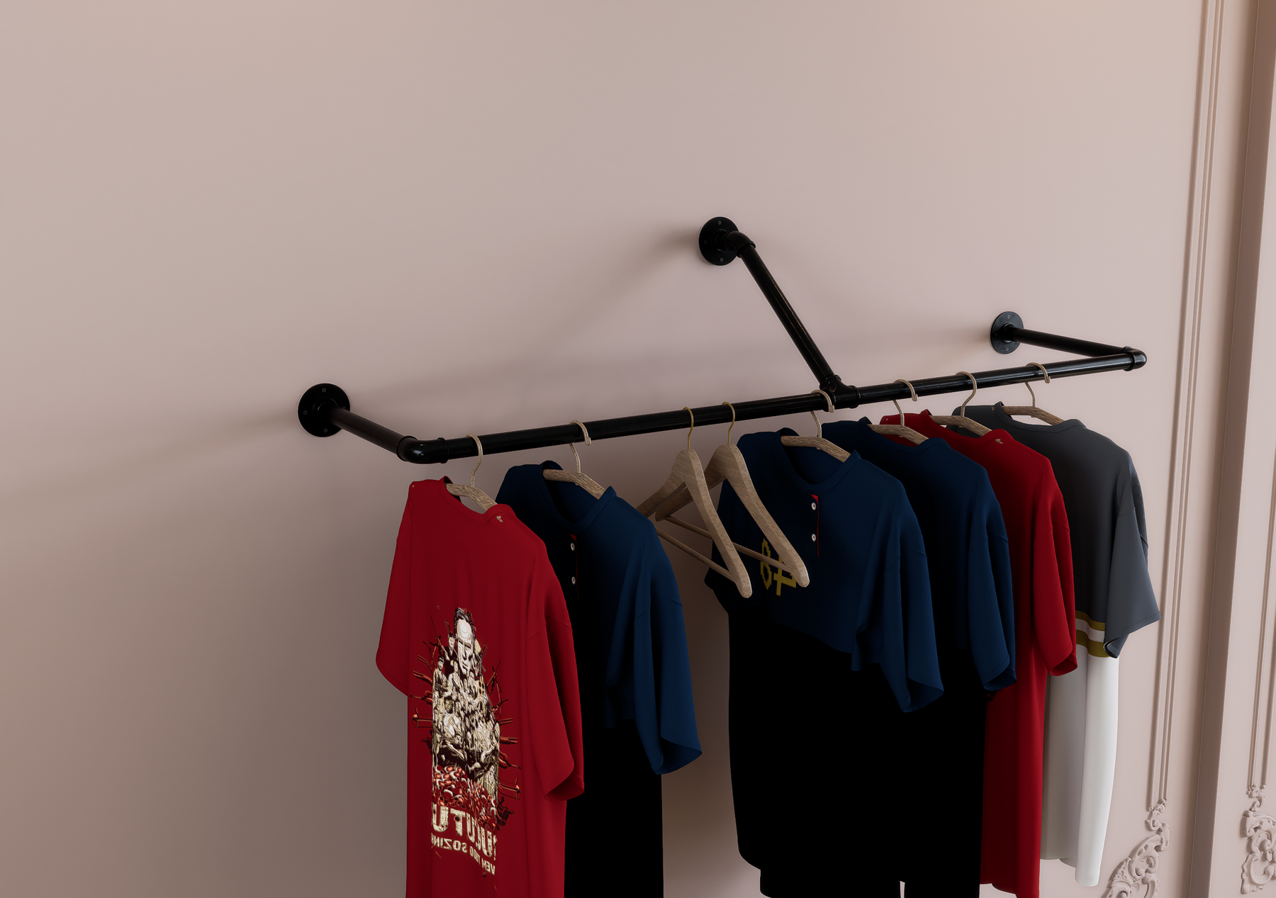 Crafted from premium matte black steel, the minimalist finish merges industrial form with high function. Whether you’re styling garments or organizing everyday wear, this rack holds up — beautifully.