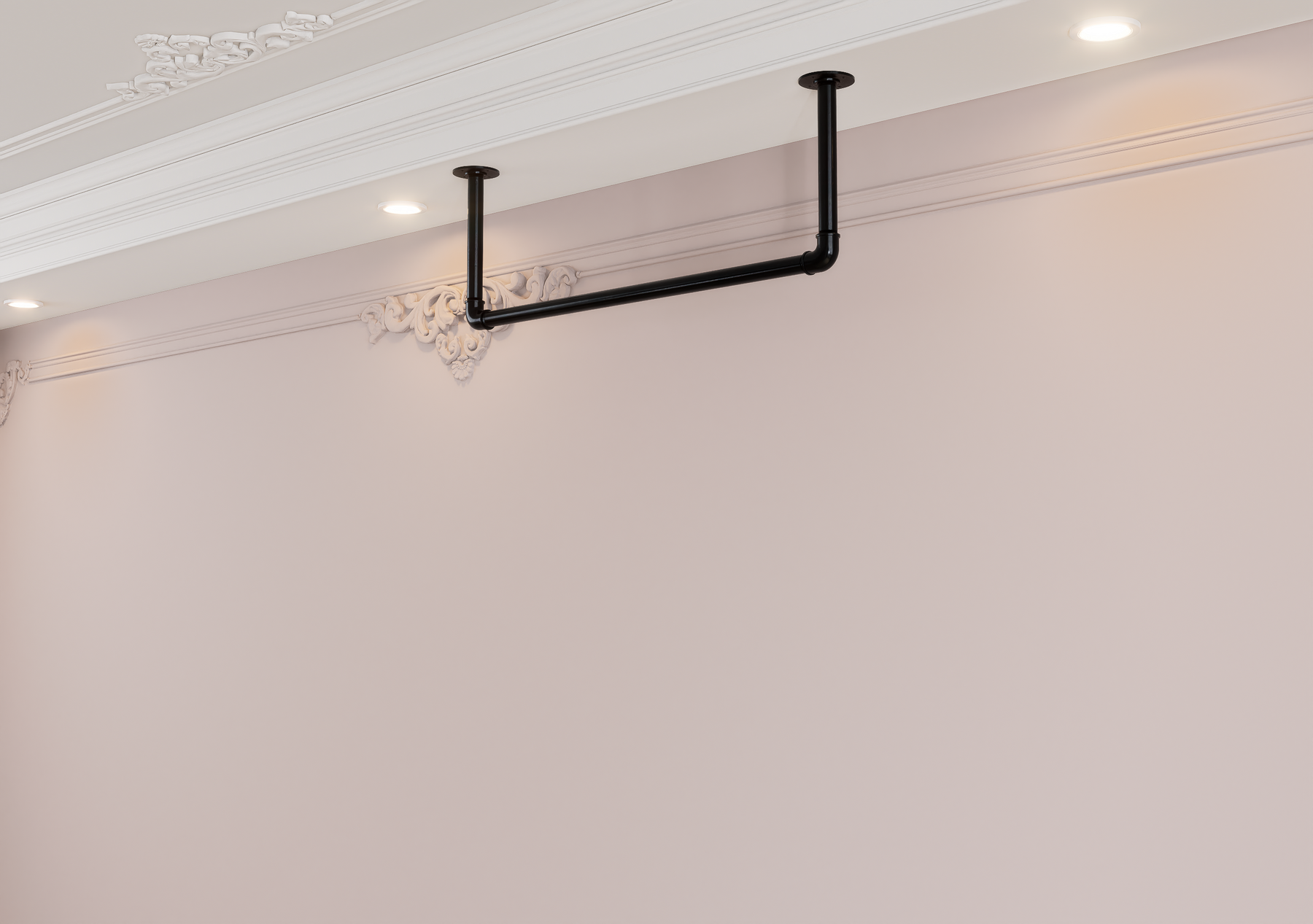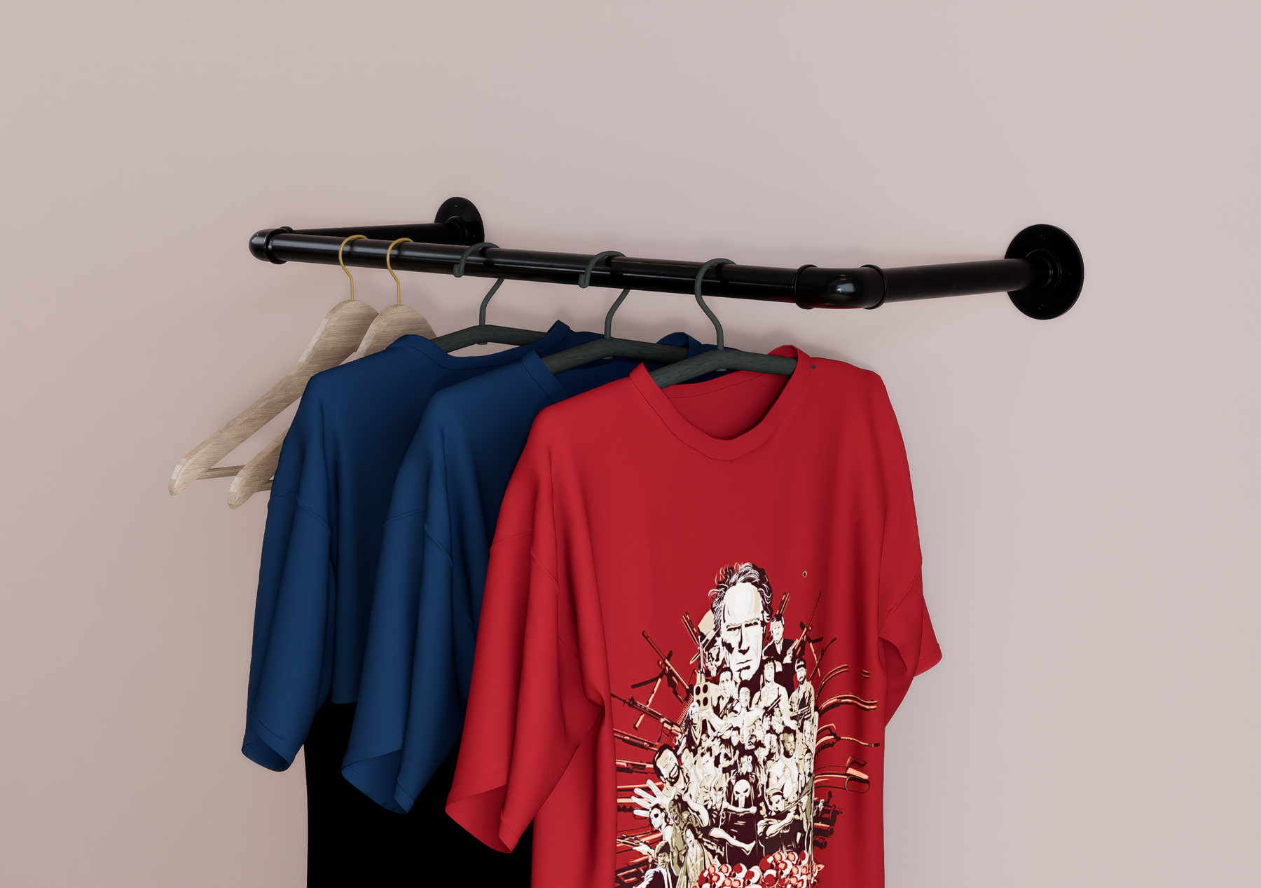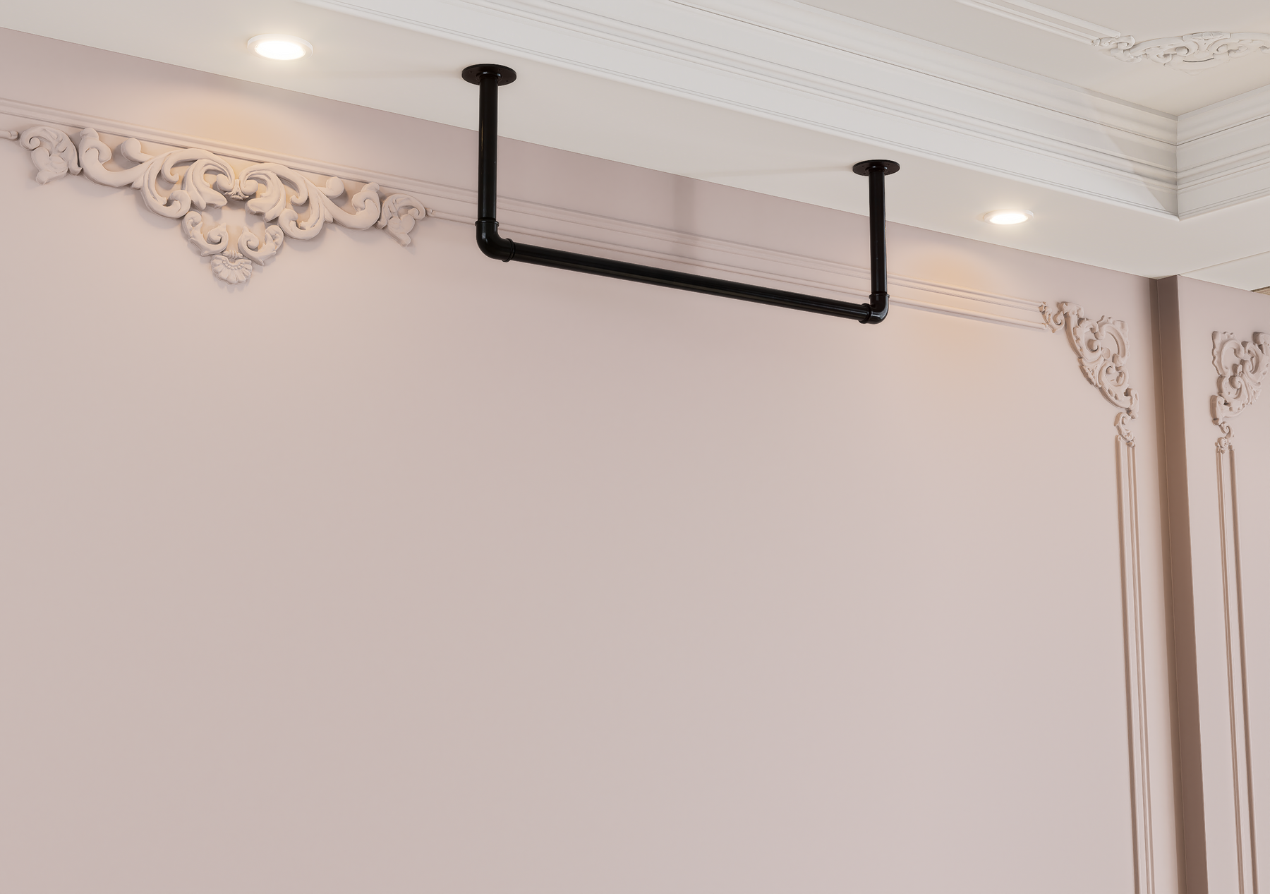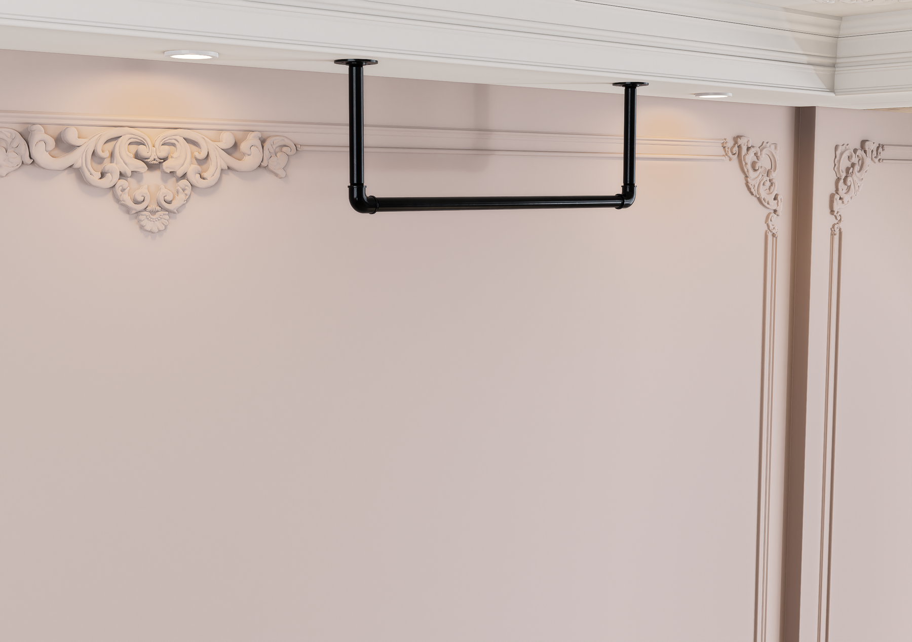 Whether wall-mounted for convenience or ceiling-suspended for boutique flair, this minimalist rail brings rugged charm and modern functionality together seamlessly.