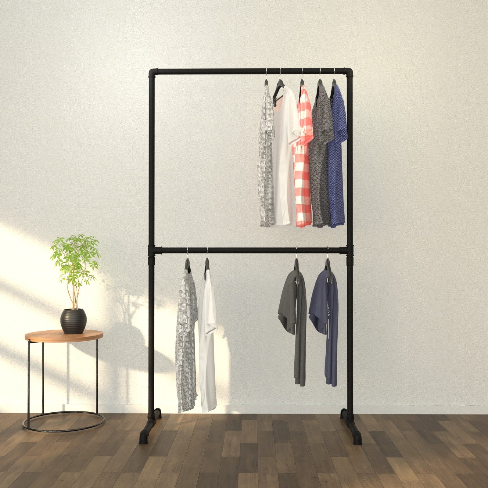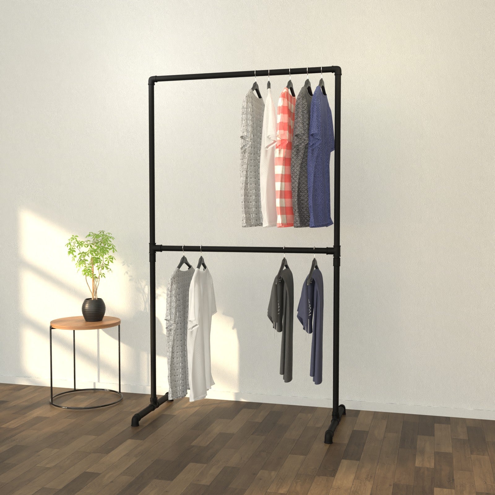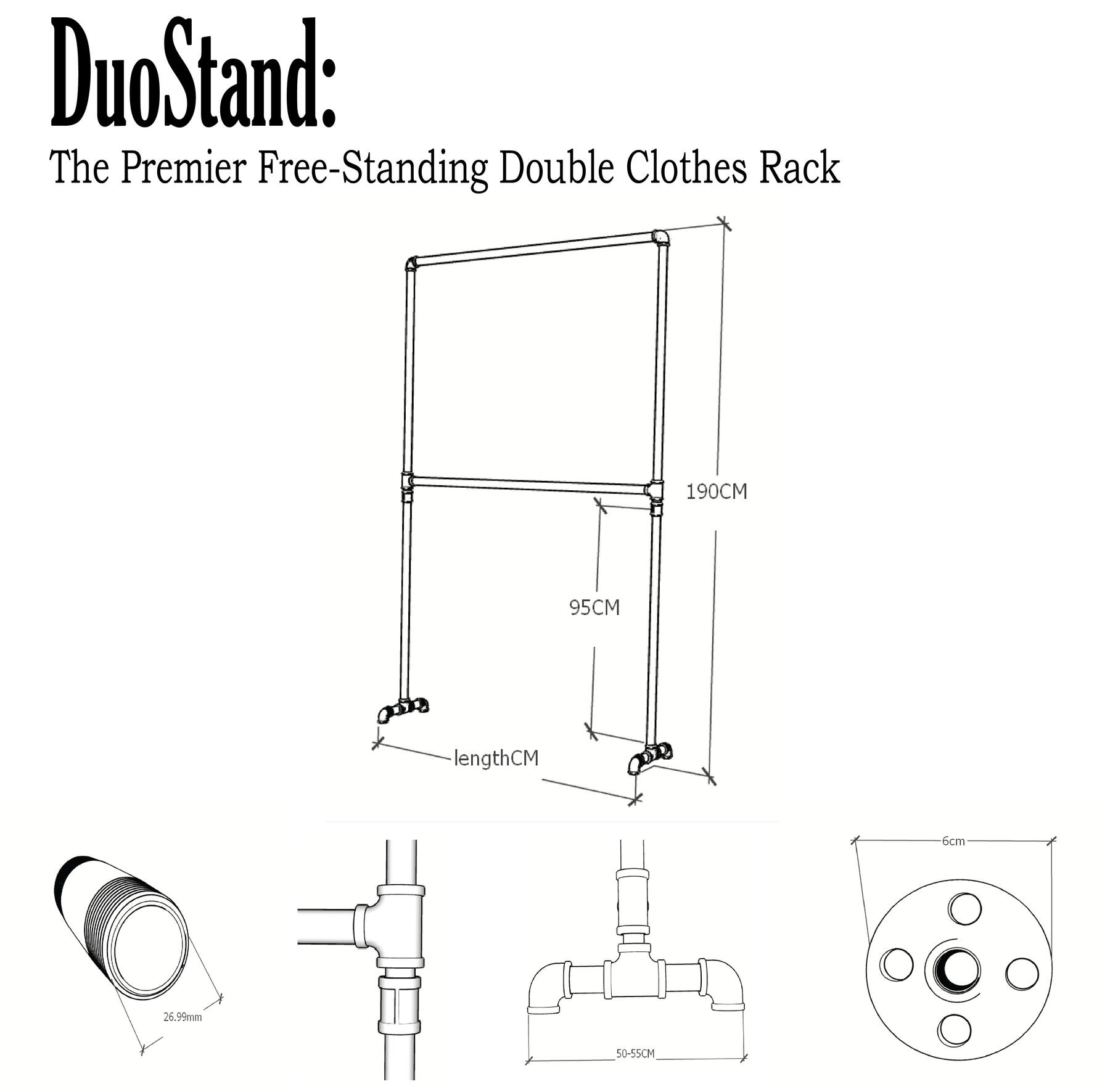 DuoStand – where balance meets brilliance. This free-standing double clothes rack offers dual layers of hanging space, ensuring your garments are organized and accessible. Crafted for those who desire both capacity and class, DuoStand stands tall as the epitome of wardrobe elegance.