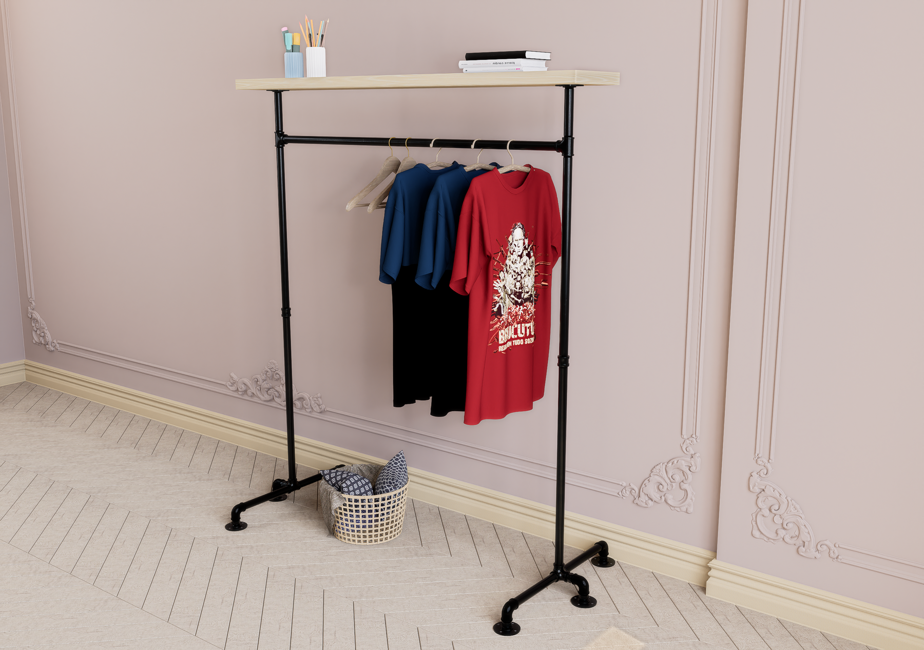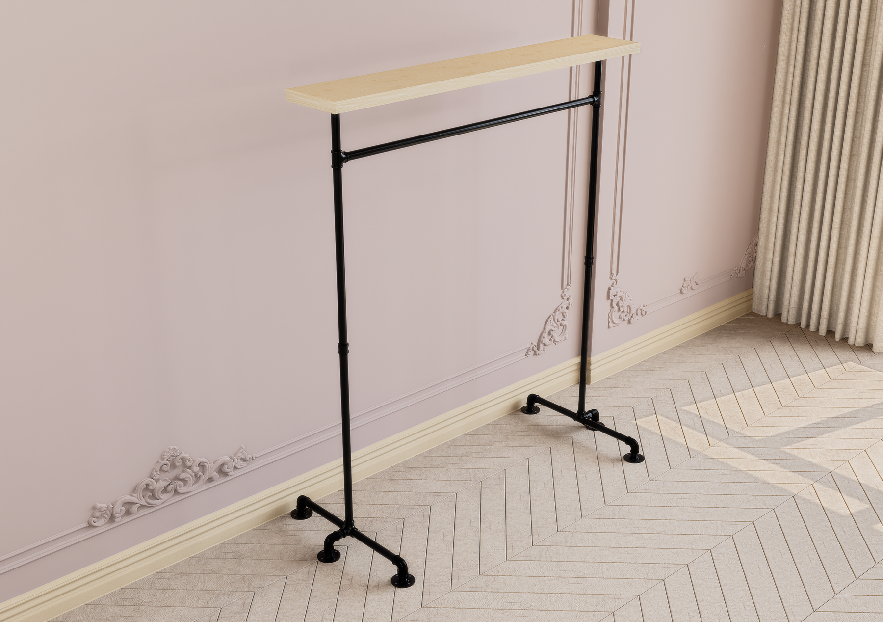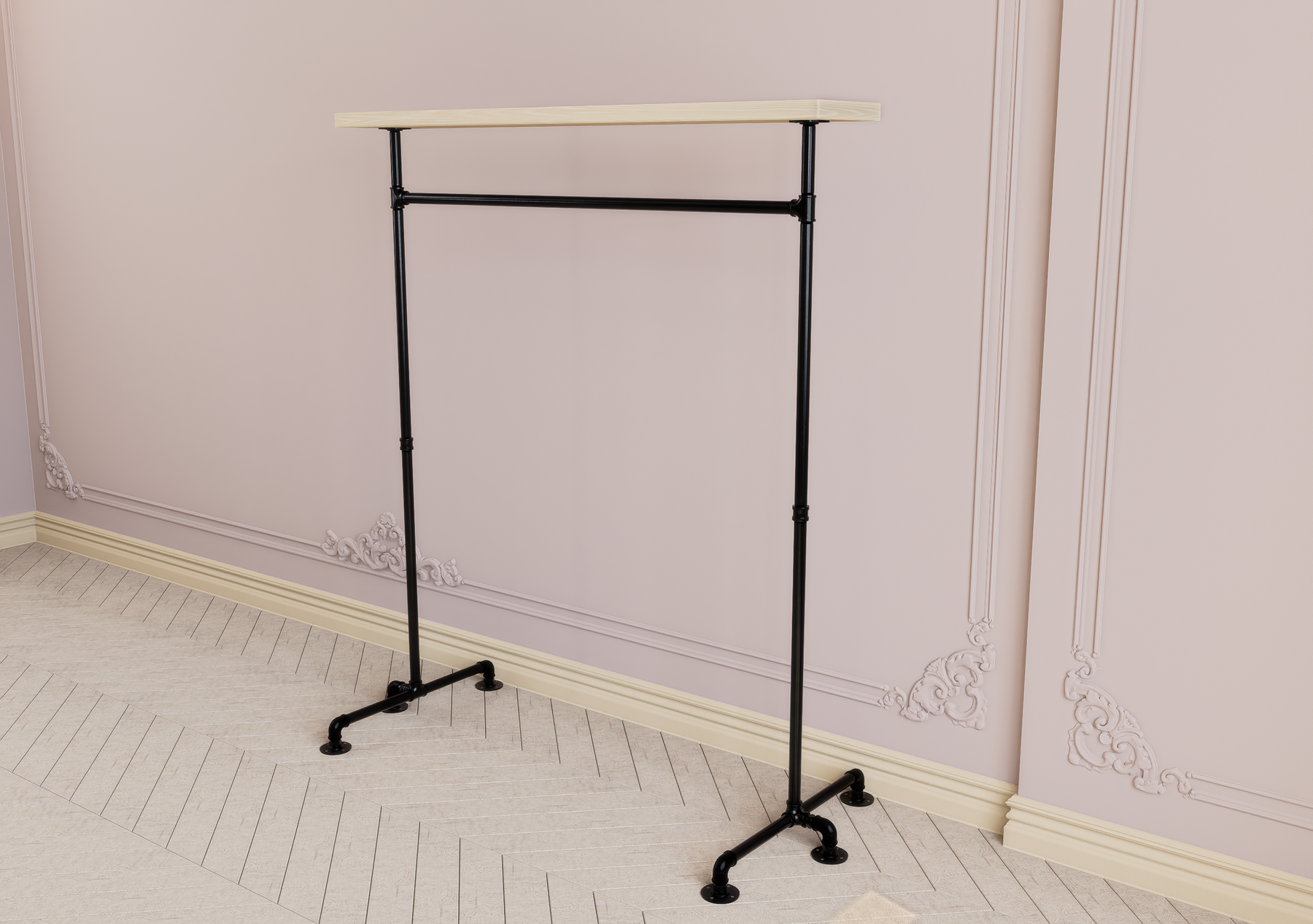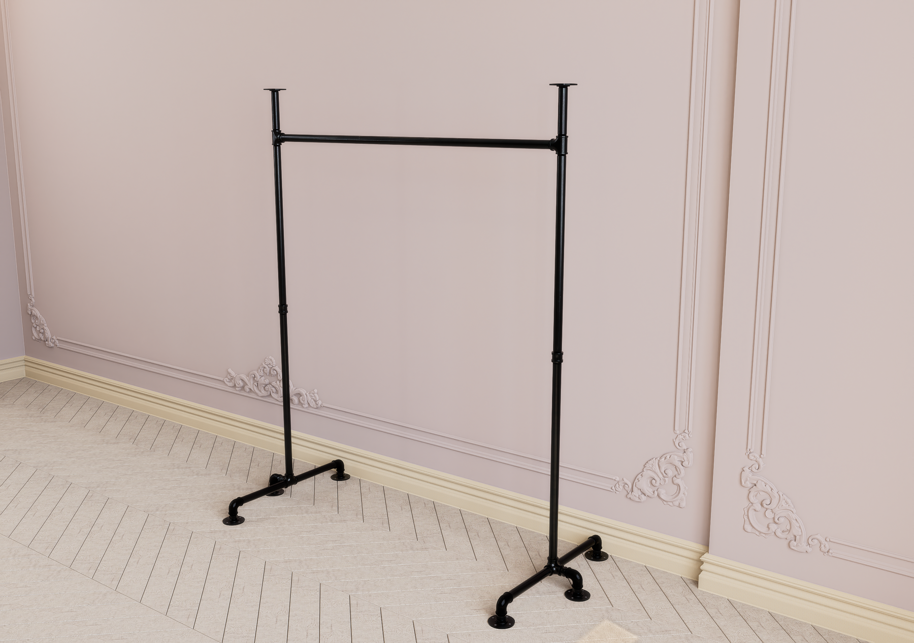 Crafted from heavy-duty black steel pipe, this durable piece blends sleek design with practical function — making it perfect for bedrooms, boutiques, laundry rooms, or entryways. The freestanding design offers flexibility and requires no wall installation.