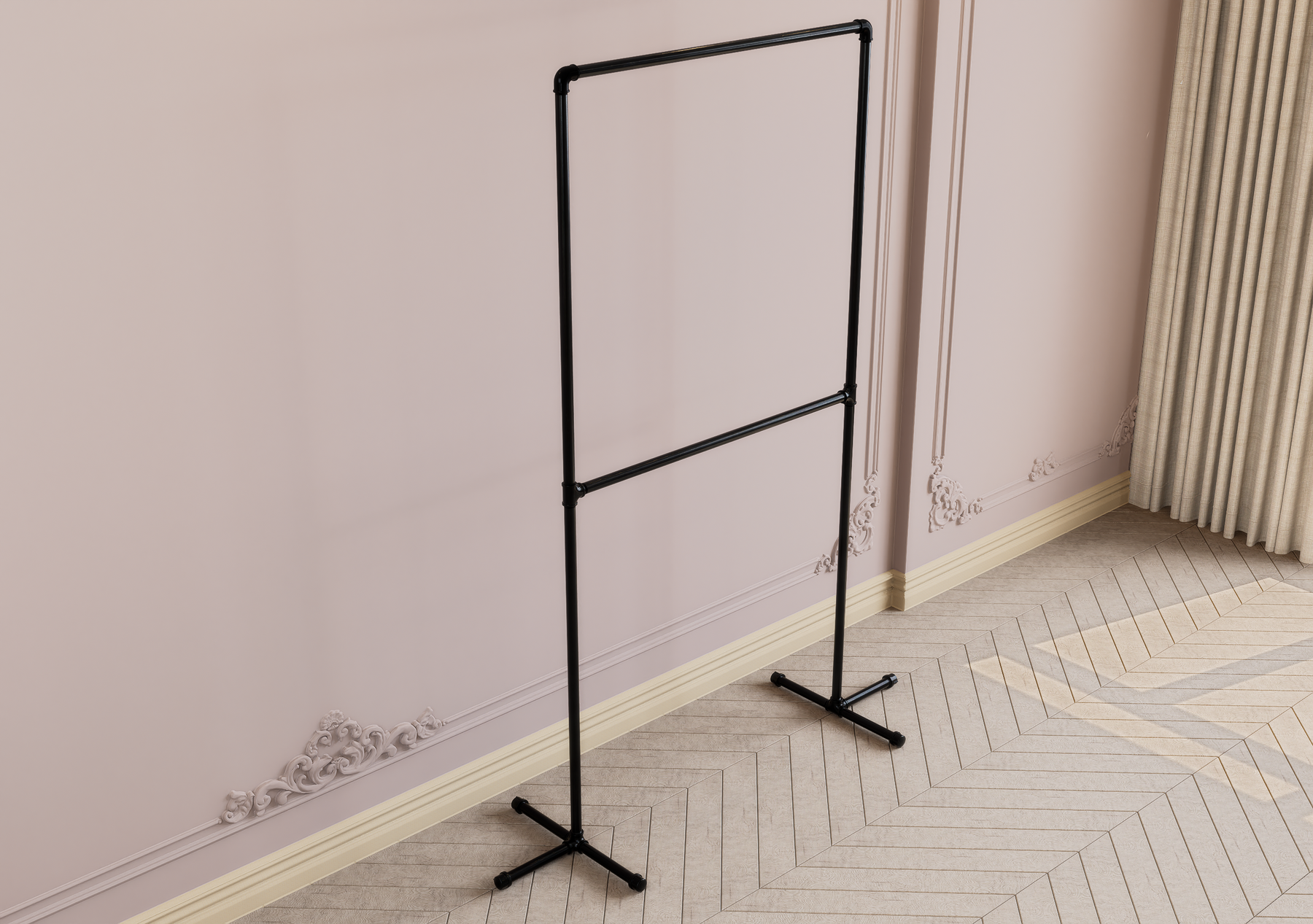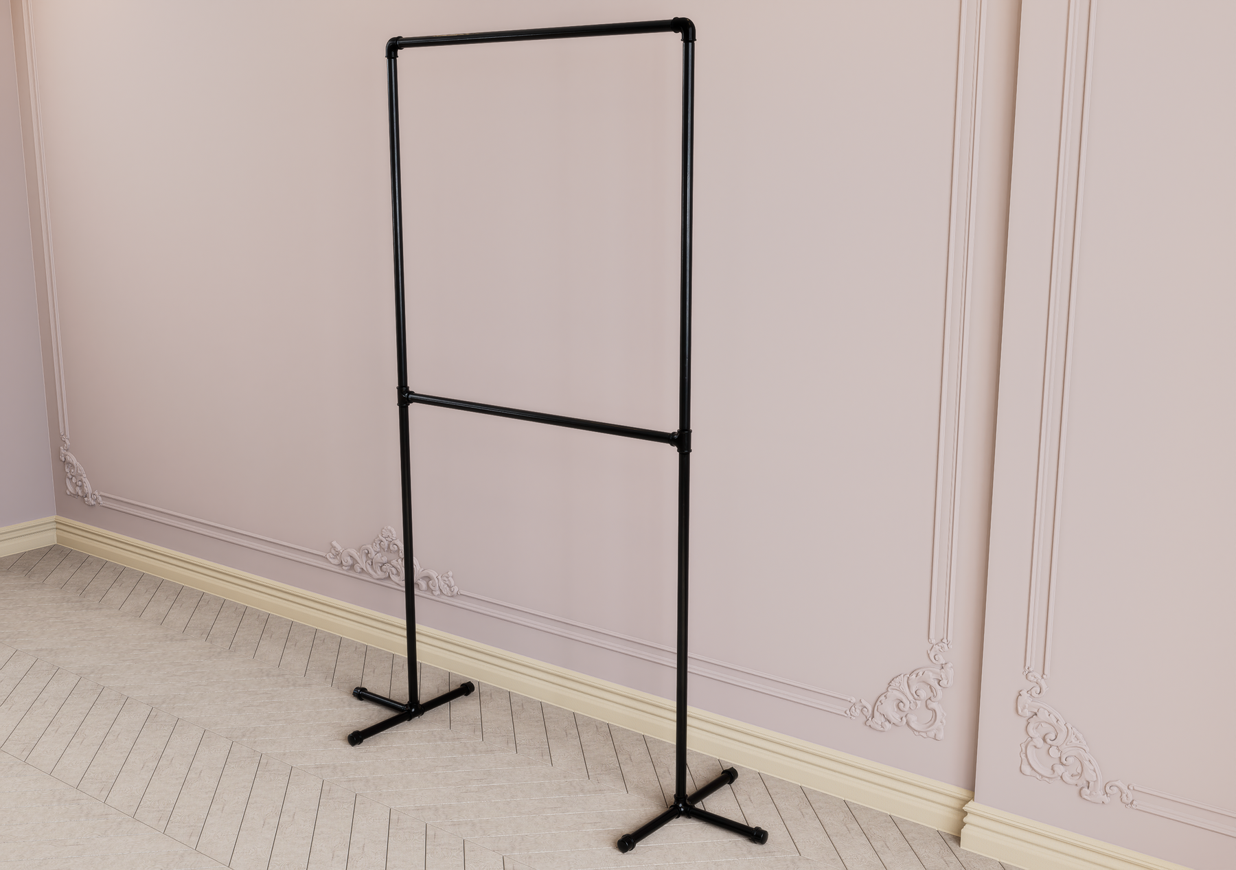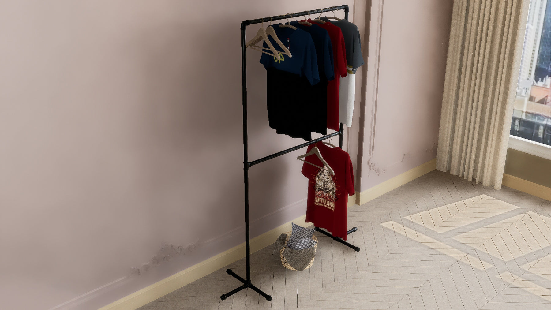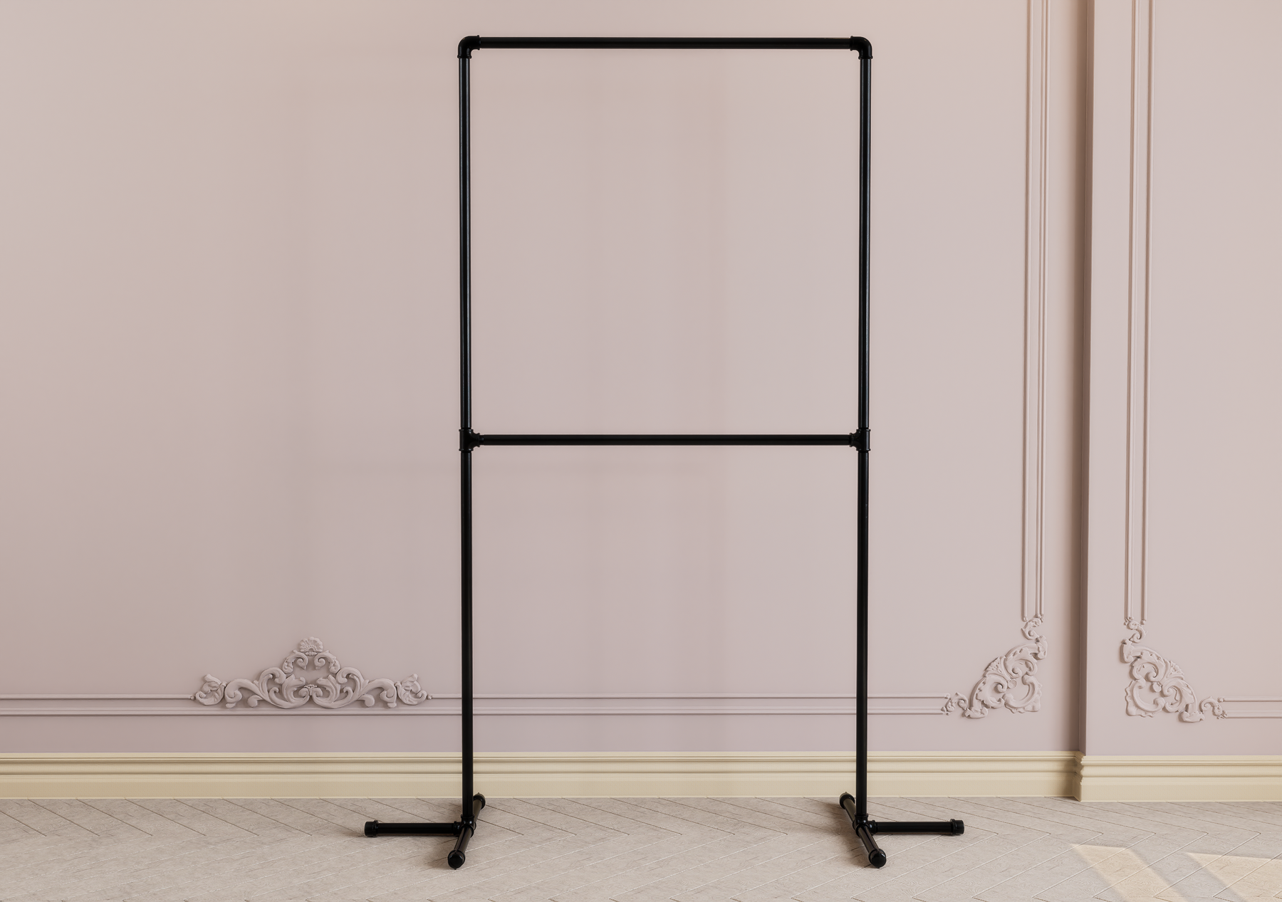 Maximize your vertical space with this sleek double-tier garment rack — a freestanding, minimalist solution ideal for small bedrooms, apartments, and creative studios. Designed for stylish storage and effortless access, this modern metal rack helps you organise garments with elegance and ease.