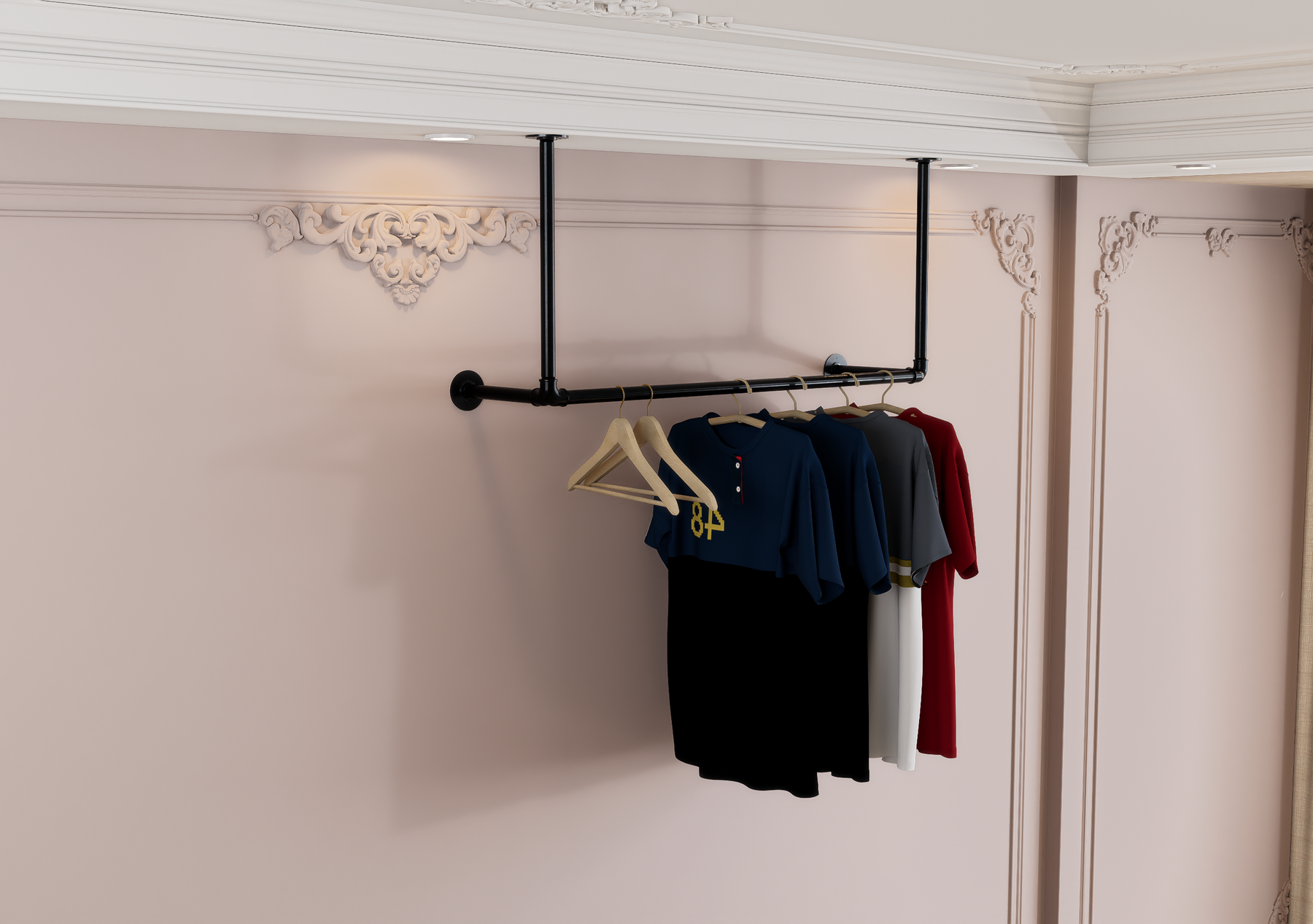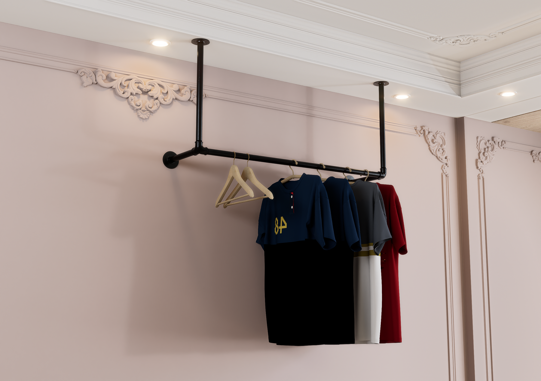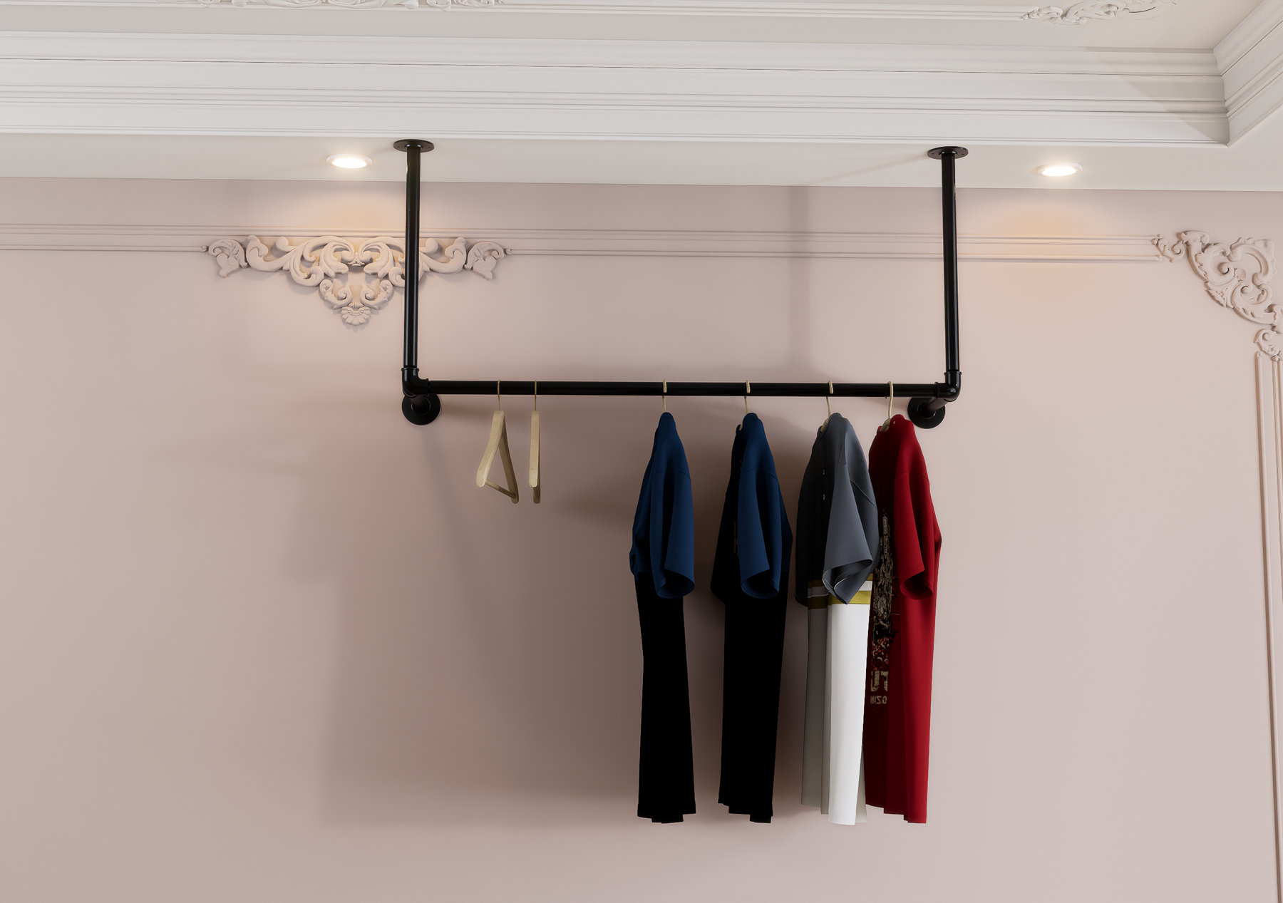 Our Ceiling & Wall Mounted Iron Clothes Rack is designed for those who appreciate smart organization and minimalist style. Crafted from strong, rust-resistant iron, this heavy-duty rack transforms ceilings and walls into stylish storage solutions.